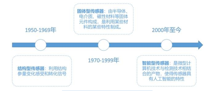 第二是固体型传感器的发展,它利用某些材料自身的物理特性在被测量的作用下发生变化,从而将被测量转化为电信号或其他信号输出(如用半导体、电介质、磁性材料等固体元件制作的传感器)。