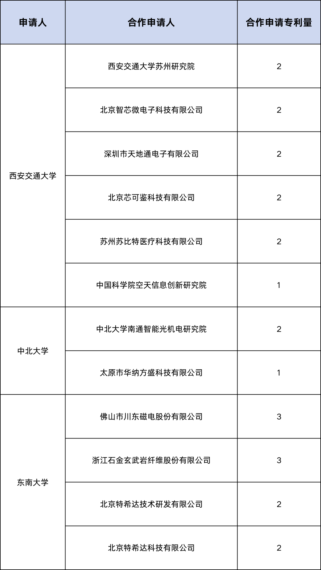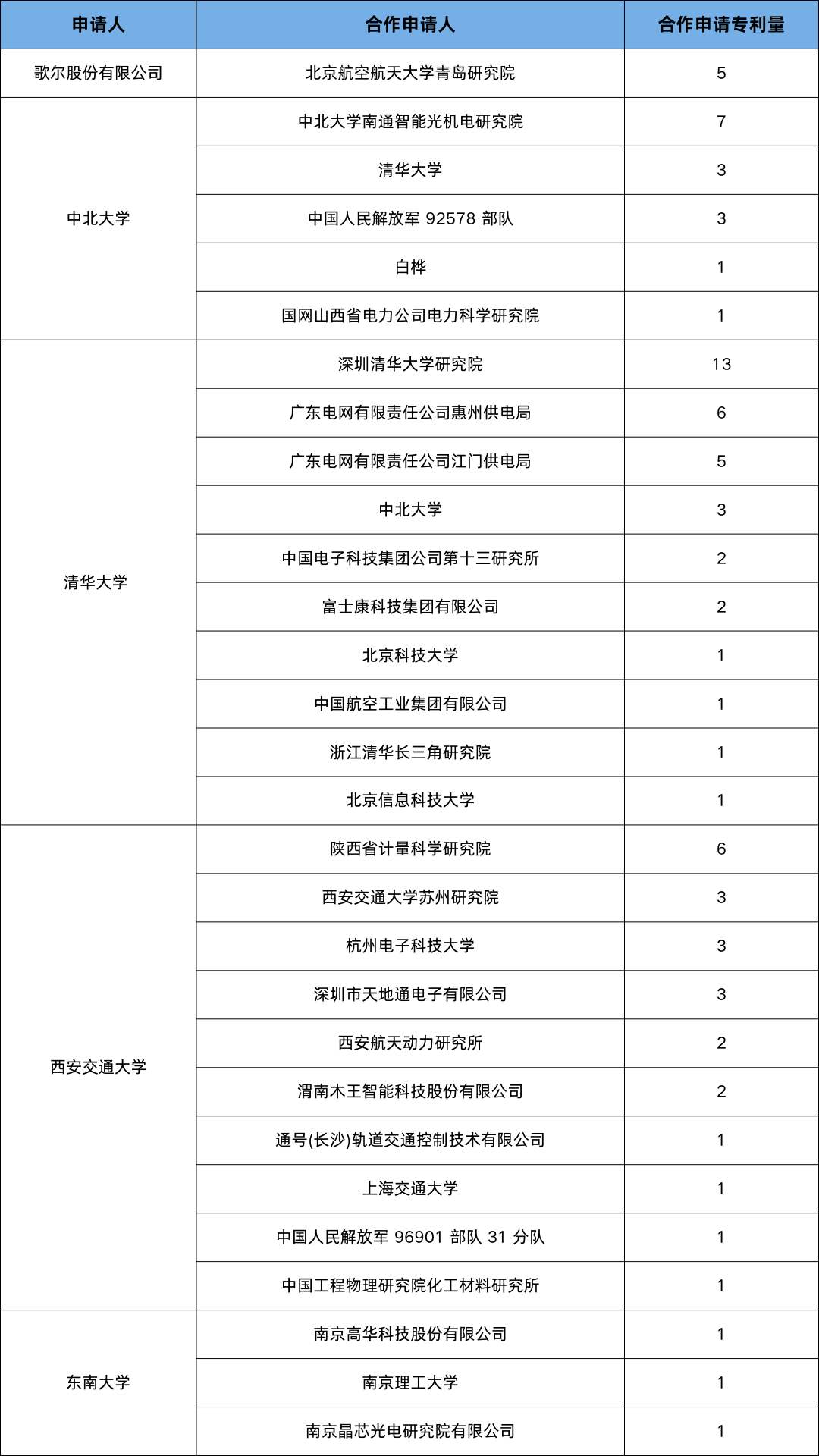 表 3 中国申请人合作情况