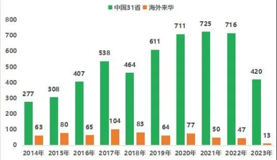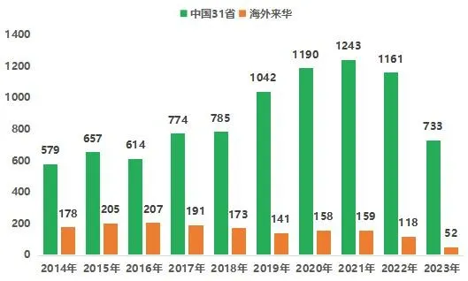 从国内 31 省市和海外来华专利布局对比情况看,国内专利申请数量明显高于海外来华专利申请数量,自 2019 年开始拉大差距,我国 MEMS 传感器技术的研发力度加大。