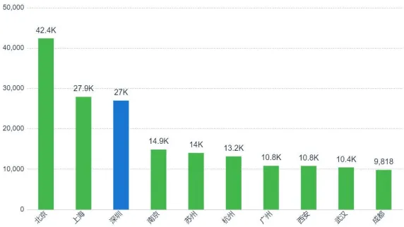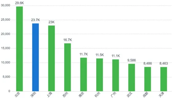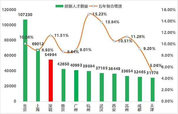 从创新人才增速来看,深圳市智能传感器产业创新人才数量的近五年复合增速为 11.51%,在全国创新人才数量排名较前的地市中排在第三。
