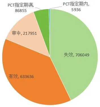 从全球智能传感器法律状态来看,目前处于“失效”状态下的专利量最多,约 70.6万件,其中未缴年费约 31.72 万件、撤回(包含主动撤回与视为撤回)约 22.74 万件、驳回 10.88 万件、期限届满 10.91 万件、权利终止约 2.72 万件、放弃 1.88 万件;其次是“有效”状态下的专利,约 63.36 万件,第三是处于“审中”状态下的专利,约 21.80万件。总的来说,全球各申请人对智能传感器领域专利的后期维护不够到位,需进一步加强。另外,日本、美国等发达国家专利布局时间比较早,目前很多专利已期限届满而失效。