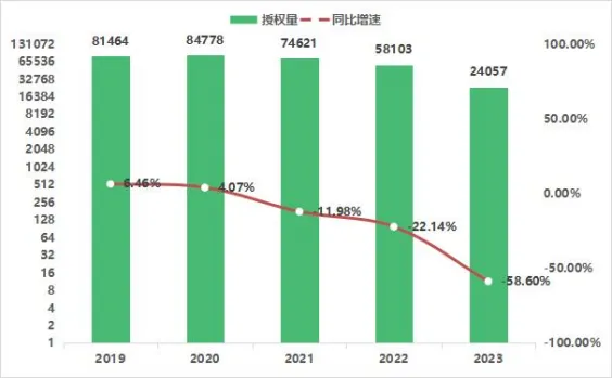 关于全球智能传感器产业的专利授权趋势,专利授权量近五年复合增速为-5.36%。2019年和2020年,全球智能传感器产业专利授权量有小幅度增长。