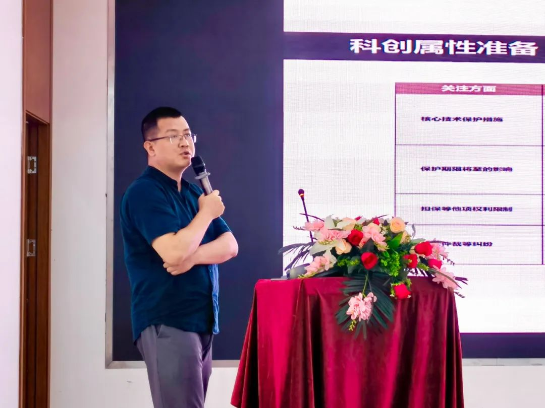 盐田区科技创新局创新促进科四级主任科员徐晨皓作盐田区惠企政策宣讲。徐晨皓表示,盐田区为推动金融服务实体经济,构建现代产业体系促进经济高质量发展,针对开展知识产权证券化融资、获得知识产权质押贷款的企业给予科技金融资助,并详细介绍该政策申报流程及所需申请材料。
