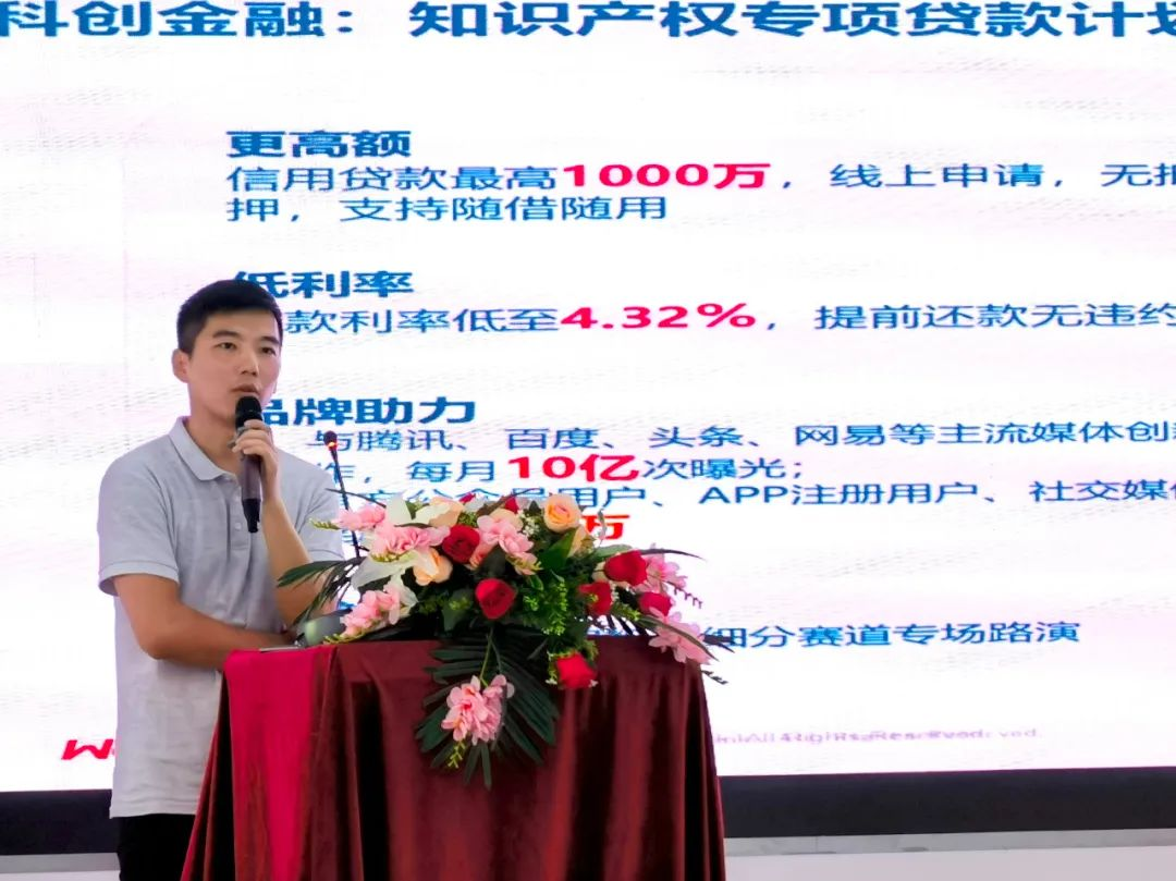 交通银行深圳分行普惠金融部科技金融专家谢重阳从科创金融服务体系、科创金融重点产品以及对科创企业增值服务三个方面介绍了科创金融和知识产权质押融资方案,并分享了融资服务案例,为深圳科技创新高质量发展贡献“交行力量”。