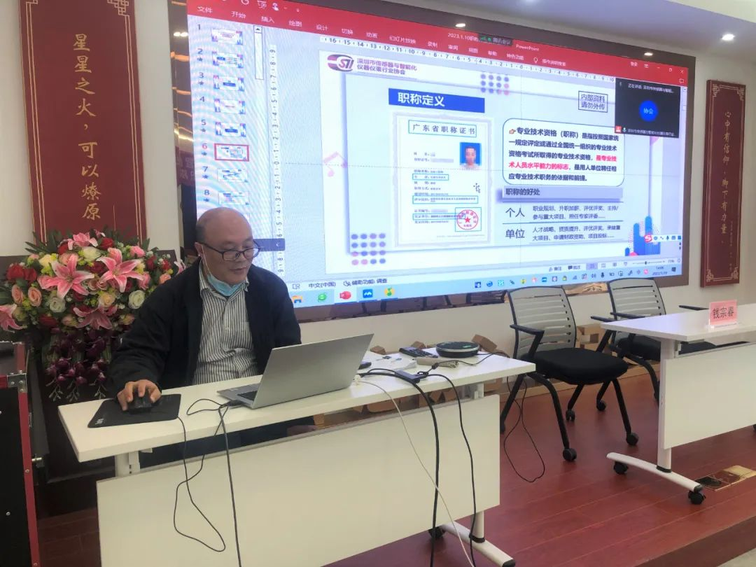 本次活动首先由协会法人代表、执行会长、高级工程师钱宗春同志作职称申报动员讲话。职称评审工作培训由协会常务副秘书长、深圳市仪器仪表技术专业高级职称评审委员会办公室主任江锦波主讲。